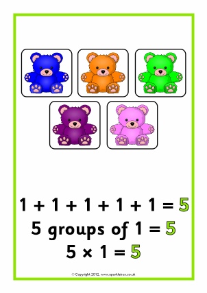 Posters featuring pictorial representation of repeated addition/arrays for numbers to 20.