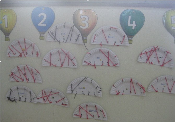 The students were learning to identify numbers 1-10 through hands on activities and later in this term they moved to sequence (route counting) the numbers 1-10. This threading activity was prepared for each student where they identified and thread the numbers in sequence.