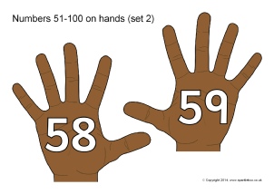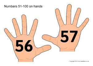 The numbers from 51 to 100 presented on hands. An extension to our existing Numbers 0-50 on hands 2 resource.