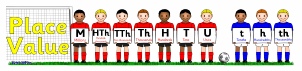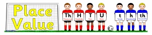 Two banners with a footballer theme, demonstrating place value in a fun visual way. Includes HTO/HTU and ThHTO/ThHTU.