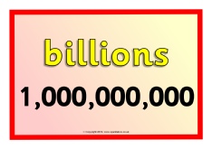 Simple printable posters showing place value from billions down to thousandths.