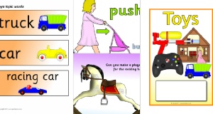 A set of A4 printable posters with numbers from 1 to 20. Each sheet has a corresponding number of toys to count.