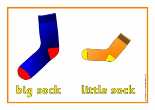 A set of 15 simple A4 posters featuring big and little objects side by side for comparison.