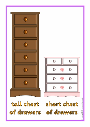 A set of 8 simple A4 posters featuring tall and short objects side by side for comparison.