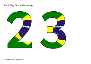 A PDF document with Brazilian flag-themed cut-out numbers and basic mathematical symbols. These are great for printing and cutting out for use on displays.
