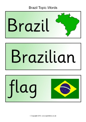 Printable word and picture cards featuring things associated with the country of Brazil.