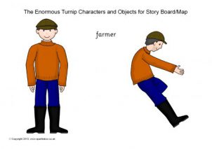 A set of printable cut-out character and object pictures for use when retelling the story of The Enormous Turnip