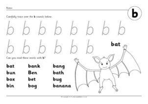 Simple printable worksheets where children can practise writing the phoneme and reading simple words with that phoneme
