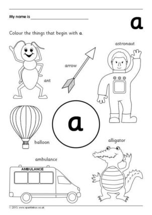 A set of worksheets where pupils colour the pictures linked to each alphabet sound