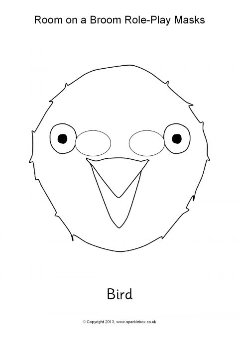Simple printable masks featuring the characters from the story Room on the Broom by Julia Donaldson and Axel Scheffler.