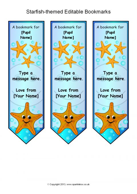 Starfish-Themed Editable Bookmarks (SB10044) - SparkleBox