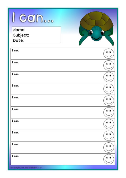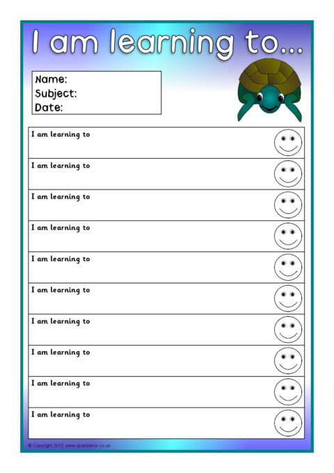 Editable target sheets (for Microsoft Word) with the text ‘I am learning to...’, ‘My next goal is...’ and ‘I can...’. Each sheet has space for 10 targets.