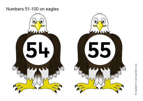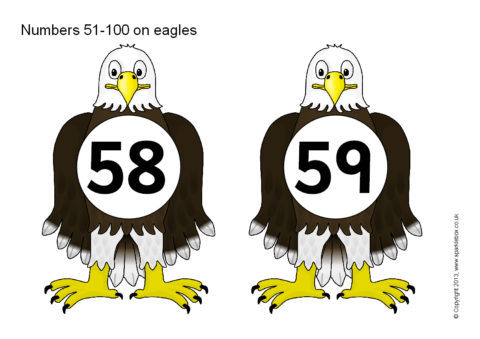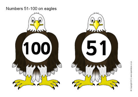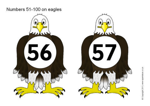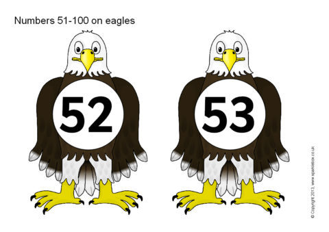 The numbers 51-100 presented on cartoon eagles. An extension to our Numbers 0-50 on eagles resource.