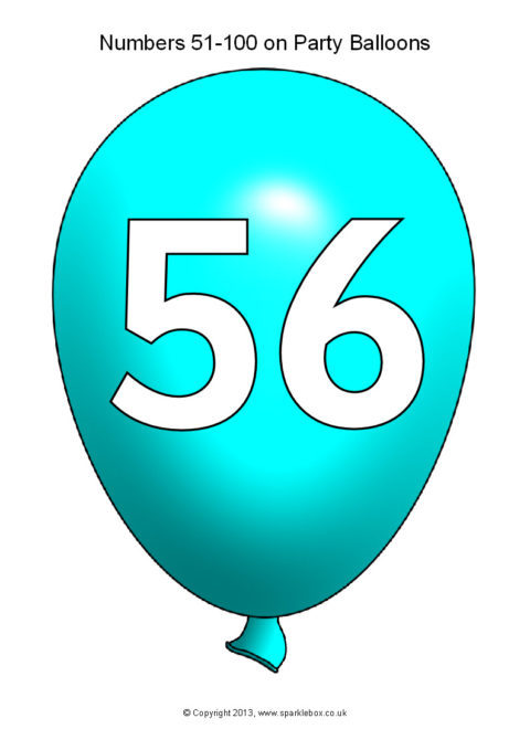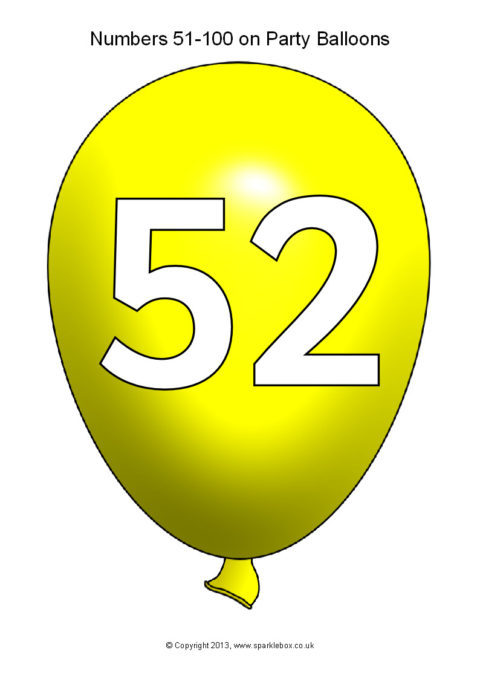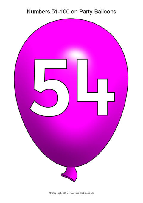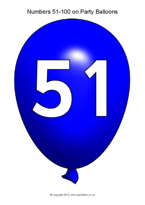 Numbers 51-100 on Party Balloons (SB10086) - SparkleBox