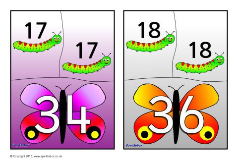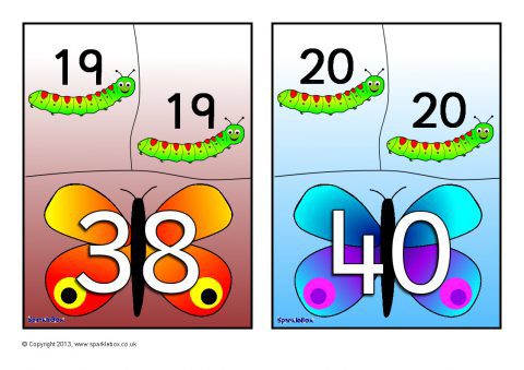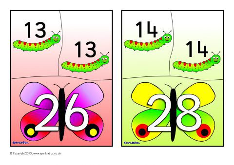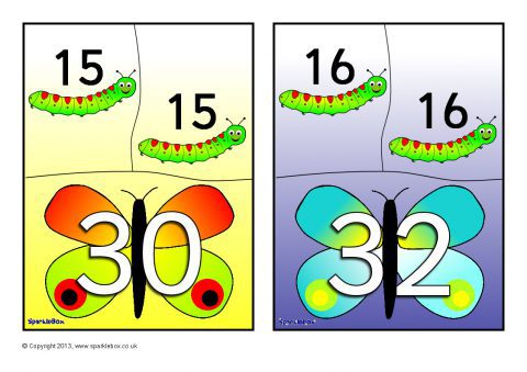 A set of 10 printable mini 3-piece jigsaws where children can match the caterpillars with numbers to the doubles on the butterfly. This will be a fun activity and is a great way for encouraging children to recall doubles from memory.