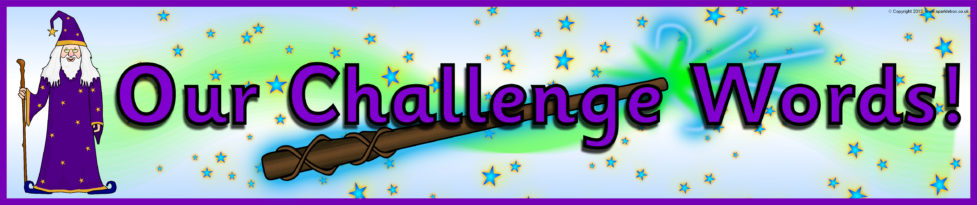 A wizard-themed banner with the title ‘Our Challenge Words!’ for your classroom spellings wall display.
