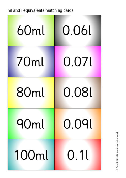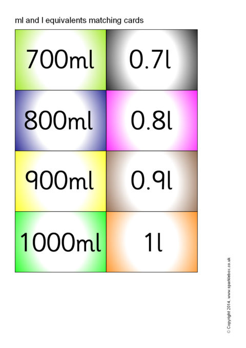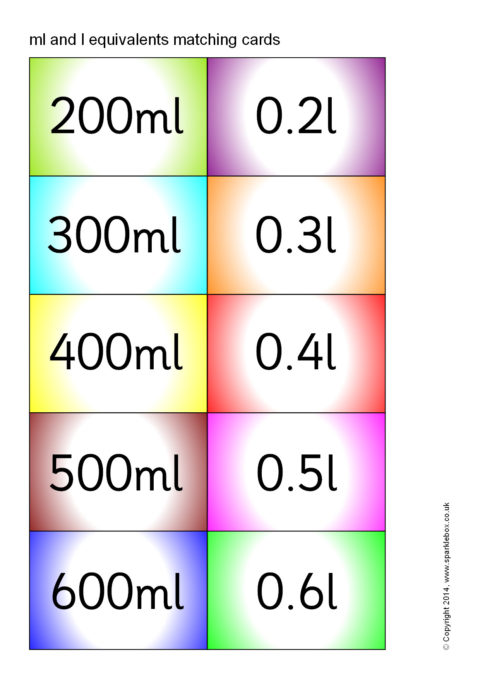 ml and l Equivalents Matching Cards – Colour (SB10182) - SparkleBox
