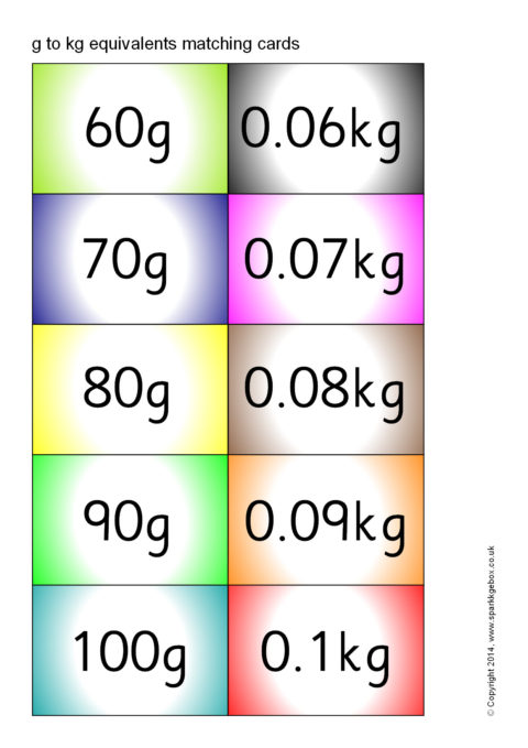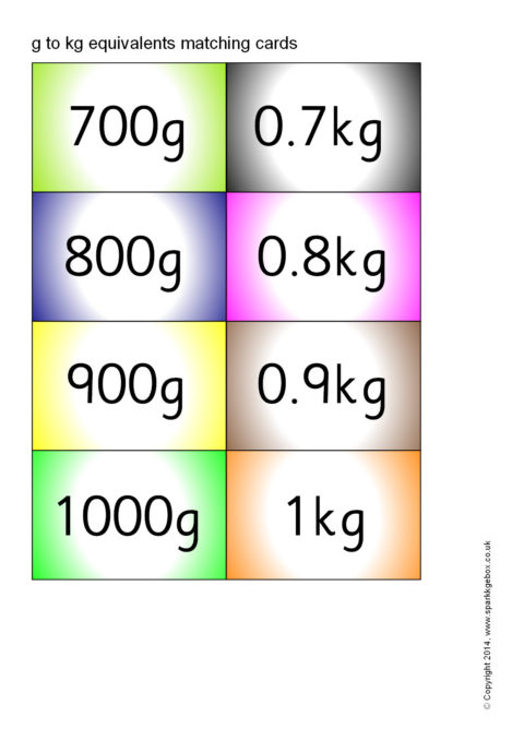 g and kg Equivalents Matching Cards – Colour
