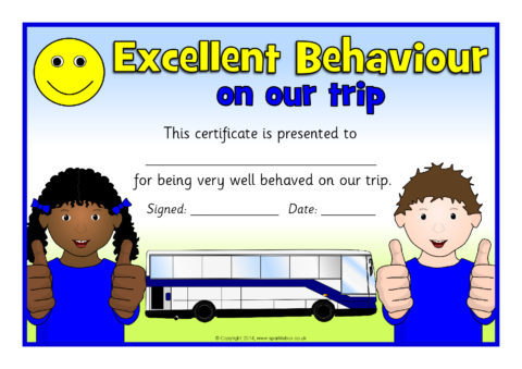 School Trip Behaviour Certificates