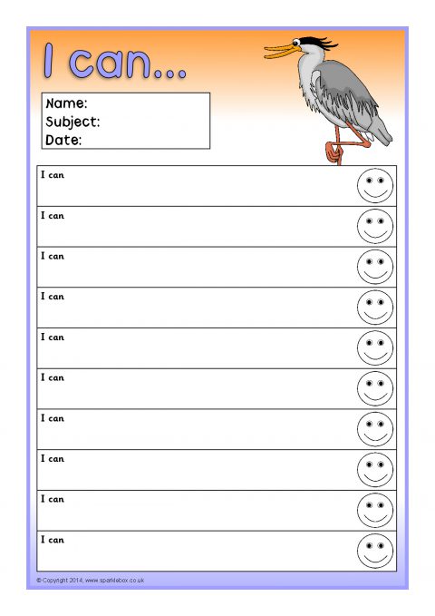 Editable target sheets (for Microsoft Word) with the text ‘I am learning to...’, ‘My next goal is...’ and ‘I can...’. Each sheet has space for 10 targets.