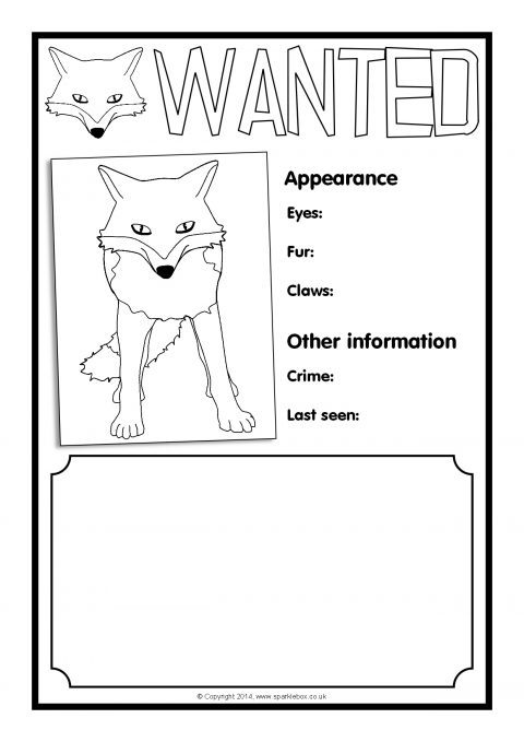 Fox Wanted Poster Writing Frames