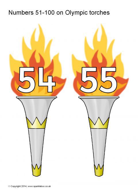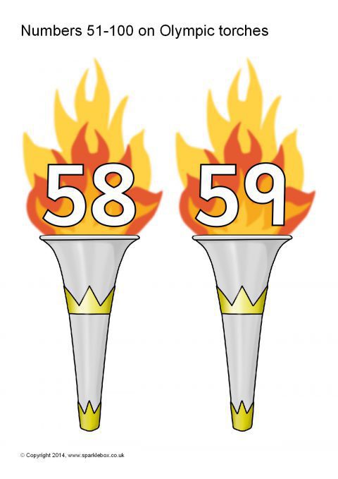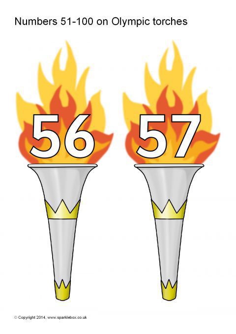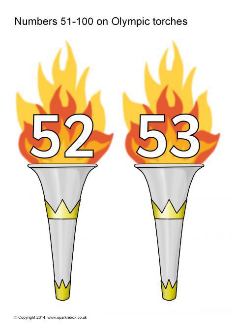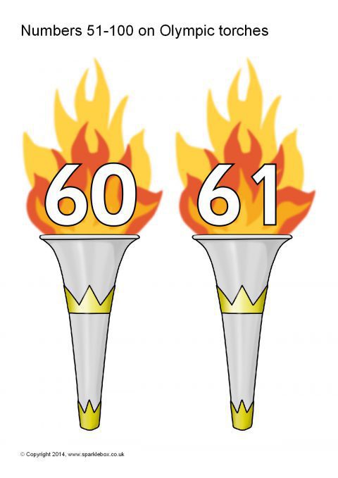 Numbers 51-100 on Olympic Torches (SB10300) - SparkleBox