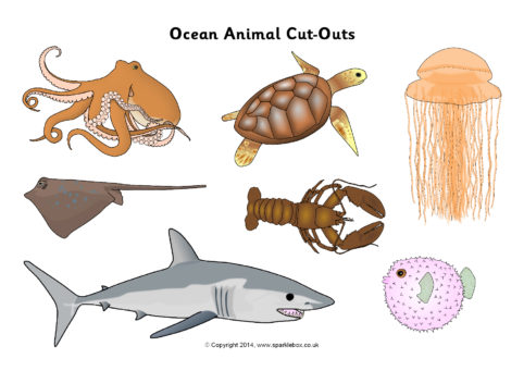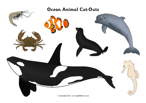 A selection of ocean animals arranged on a page for cutting out. Great for use in your own activities, games, resources and displays.