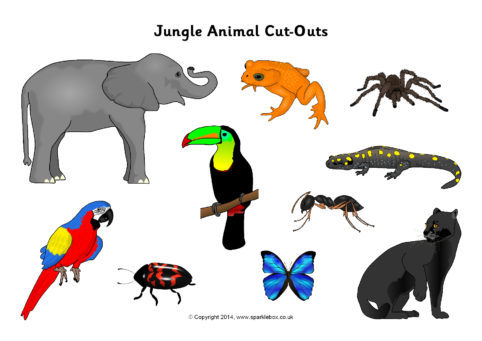 A selection of jungle animals arranged on a page for cutting out. Great for use in your own activities, games, resources and displays.