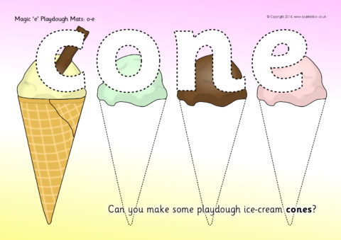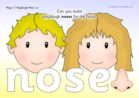 A set of simple printable mats where children make words with ‘o-e’ and related objects from playdough.