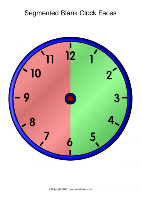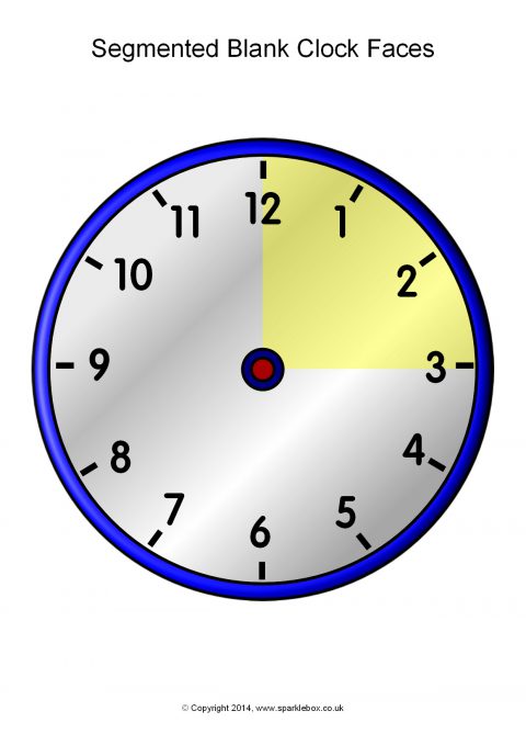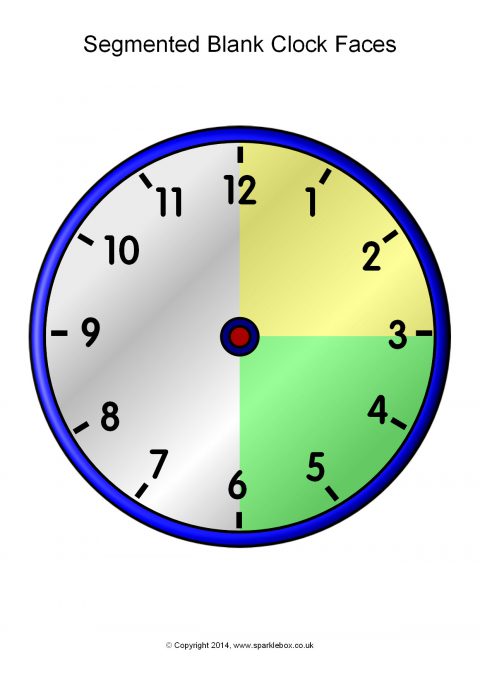 Printable blank clocks divided into half-hour and quarter-hour segments for pupils to add/draw the hands. Could be laminated for use with whiteboard pens.