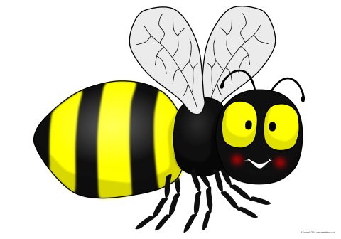 A large printable cartoon bee picture that prints over 8 portrait A4 pages. Assemble this on your classroom display for great visual impact!