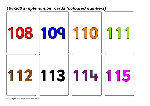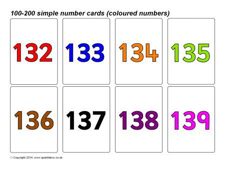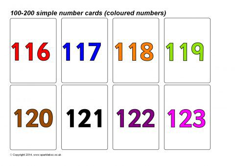 Simple 100-200 Number Cards (Coloured Numbers) (SB10395) - SparkleBox
