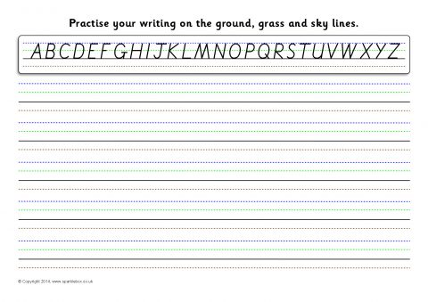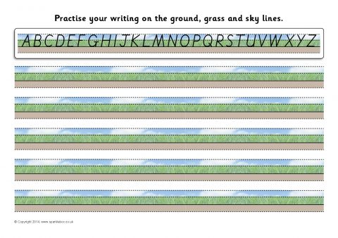 Printable sheets with the ground, grass and sky lines at a useful size for practise writing. They could be laminated for use with fine dry-wipe pens, or used as templates for writing or formation practise.