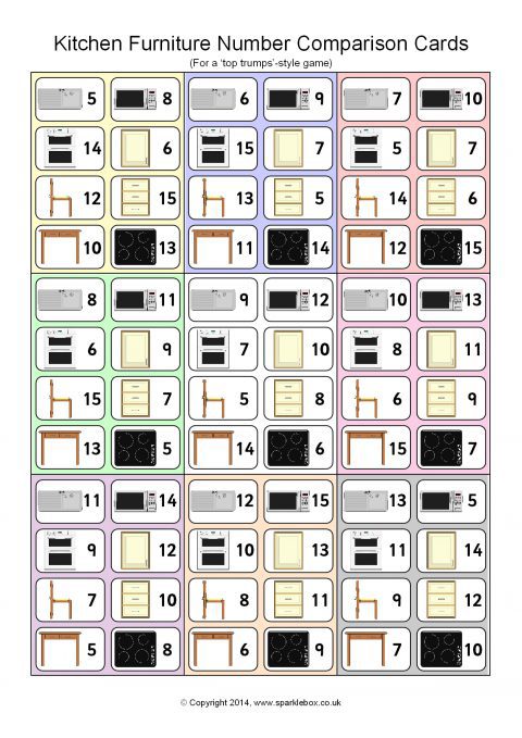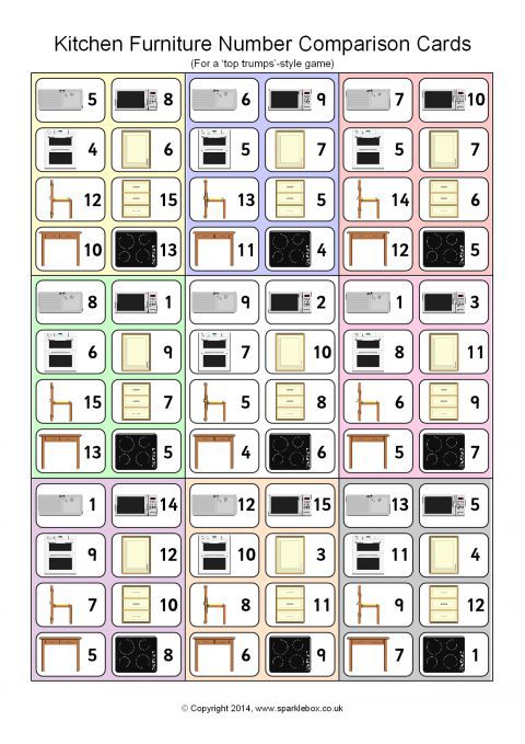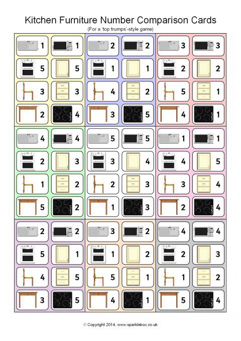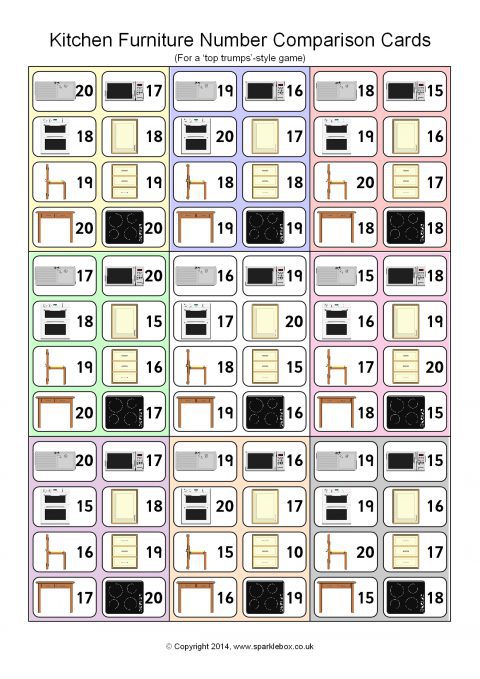 Kitchen Furniture Number Comparison Cards (for a Top Trumps-Style Game) (SB10445) - SparkleBox