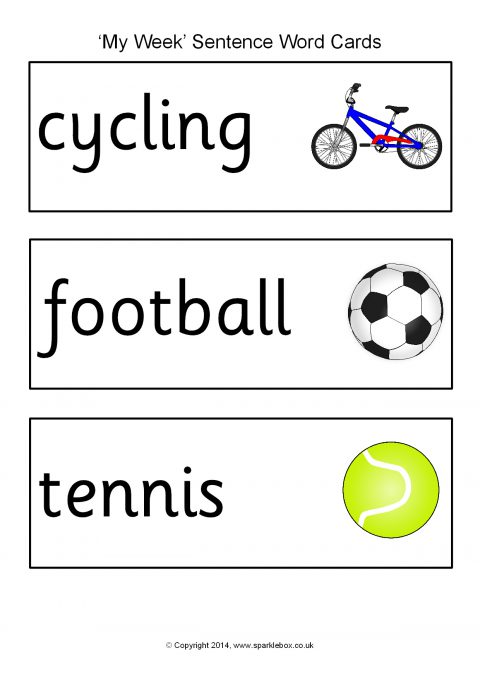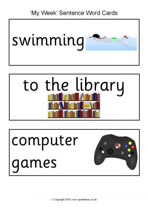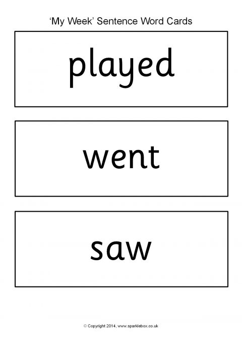 A set of printable word cards that can be used to make past tense sentences about activities that happened on different days of the week. For example ‘On Tuesday I played football.’ or ‘On Saturday I went shopping.’