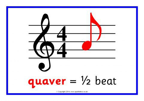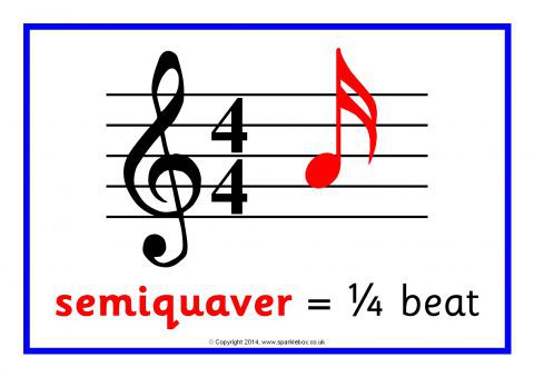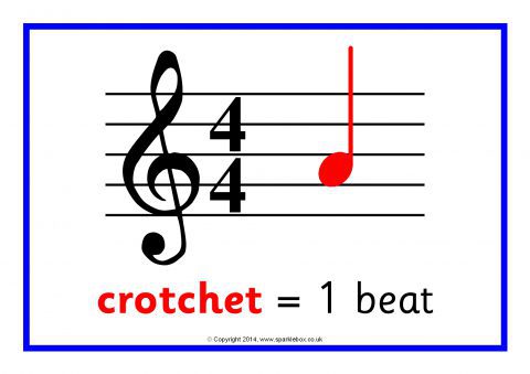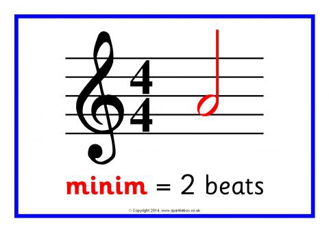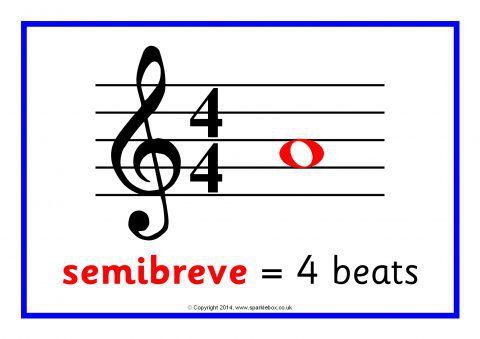 A set of printable posters that show the lengths of the common notes in 4/4 time.