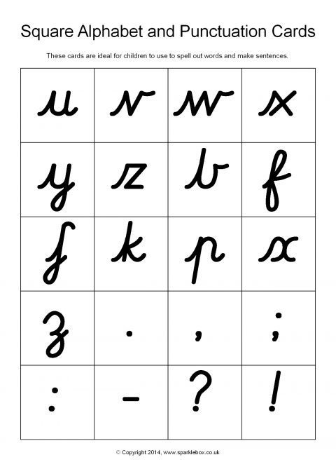 Square Alphabet and Punctuation Cards – Cursive