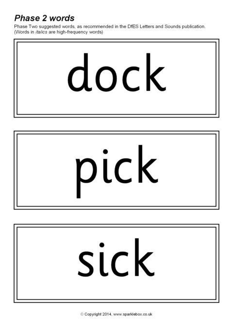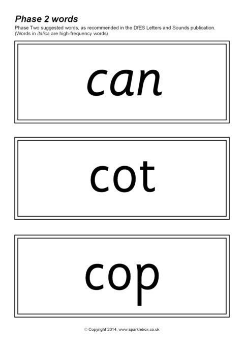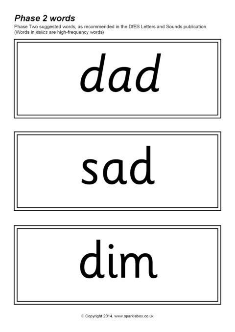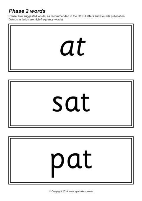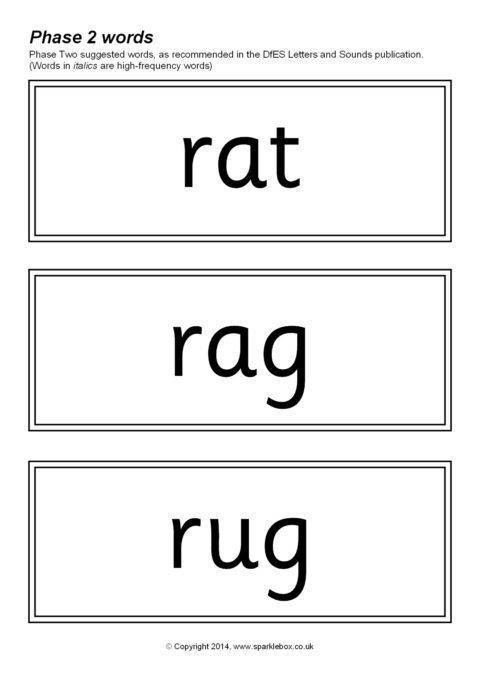 The suggested words for Phase Two as outlined in the DfES Letters and Sounds publication. Over 170 words included.