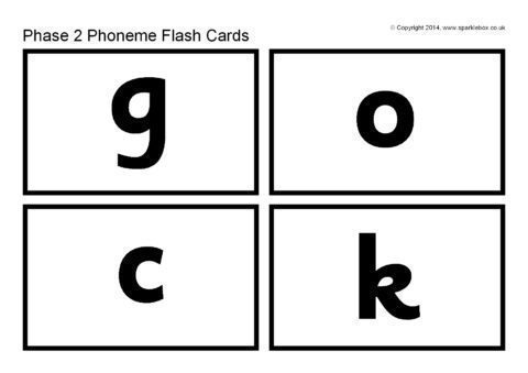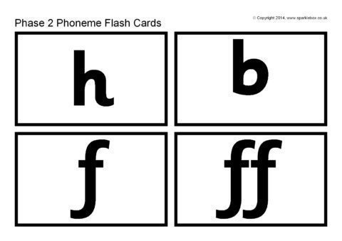 Printable flash cards featuring the phonemes for Phase 2.