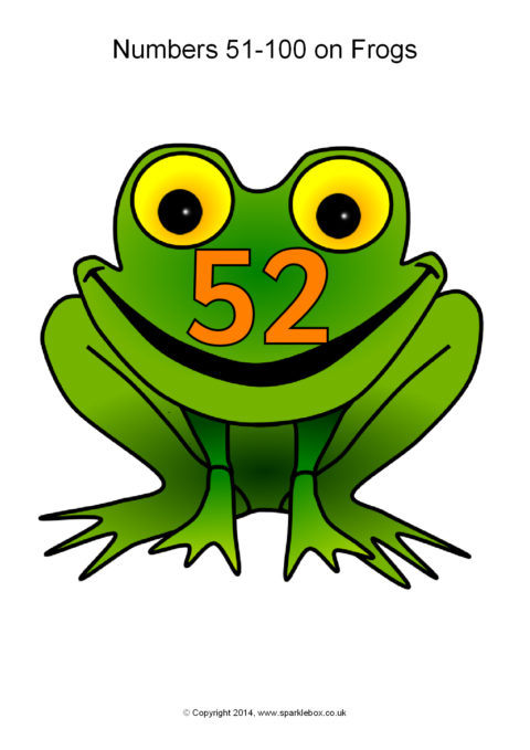 The numbers from 51 to 100 presented on fun frog characters. An extension to our existing Numbers 0-50 on frogs resource.