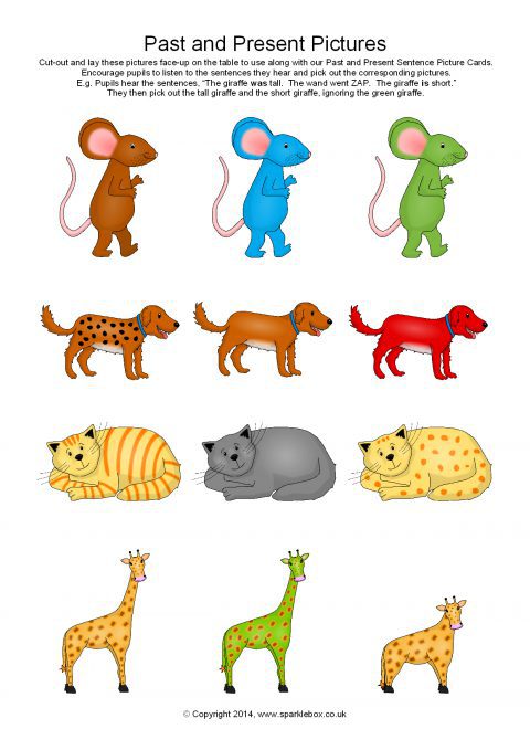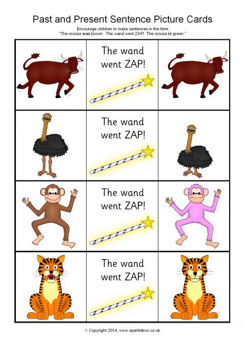 An activity where children are encouraged to make simple sentences using ‘was’ and ‘is’ to describe the appearance of animals before and after they are ‘zapped’ with a magic wand.