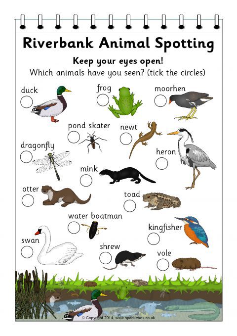 A form for children to tick off various animals they see at the riverbank.