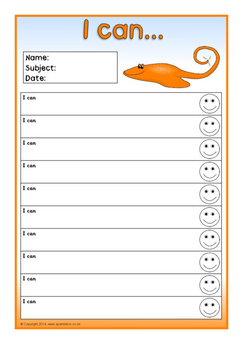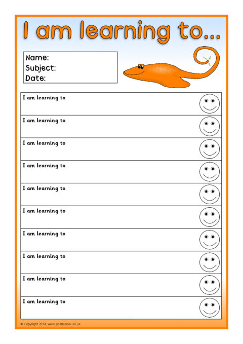 Editable target sheets (for Microsoft Word) with the text ‘I am learning to...’, ‘My next goal is...’ and ‘I can...’.  Each sheet has space for 10 targets.