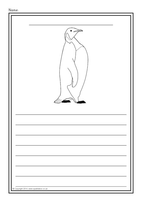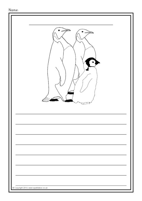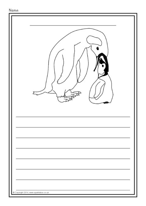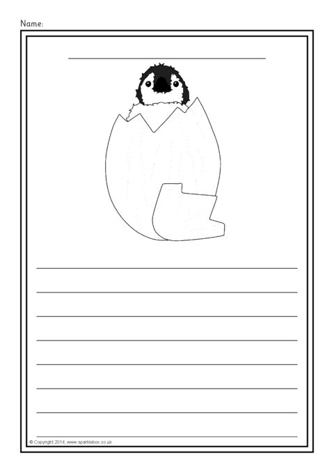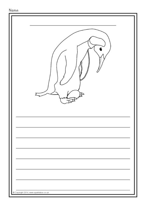 A set of simple printable sheets featuring images of penguin growth for children to colour along with writing lines for topic-related writing.