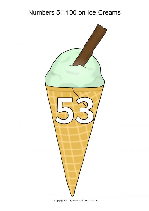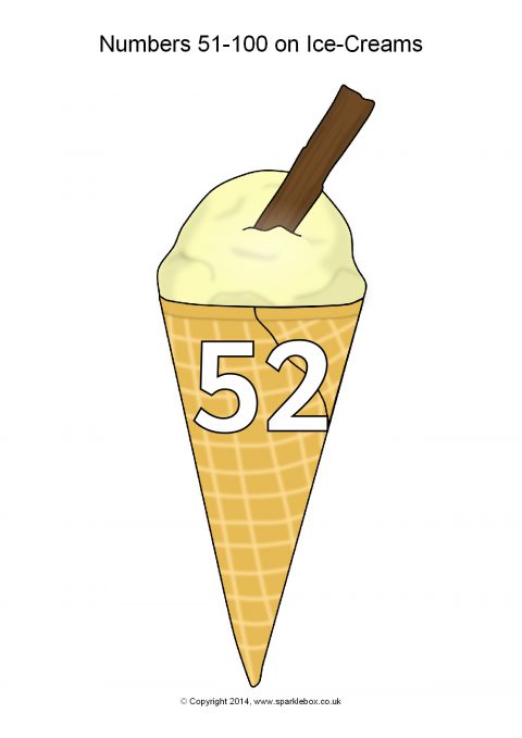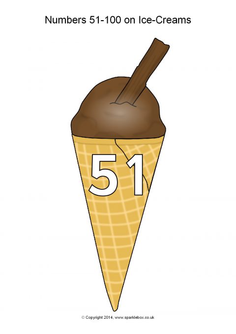 Numbers 51-100 on Ice-Creams (SB10811) - SparkleBox