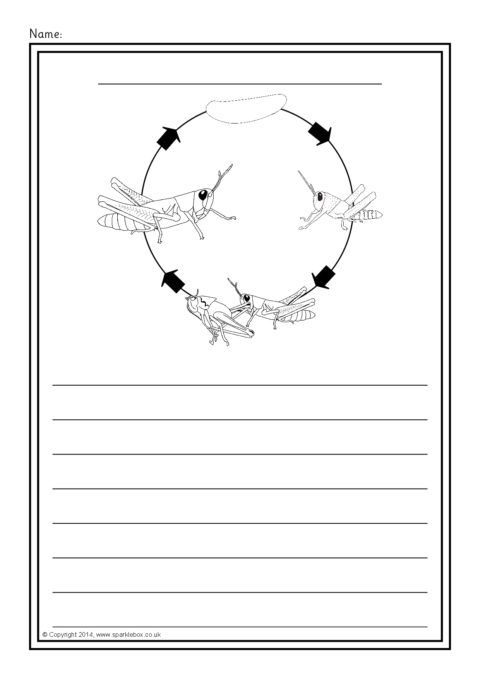 Grasshopper Life Cycle Colour and Write Worksheets (SB10842) - SparkleBox