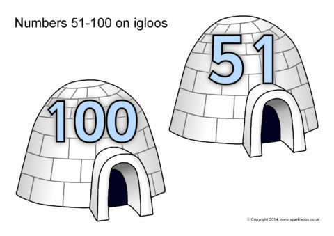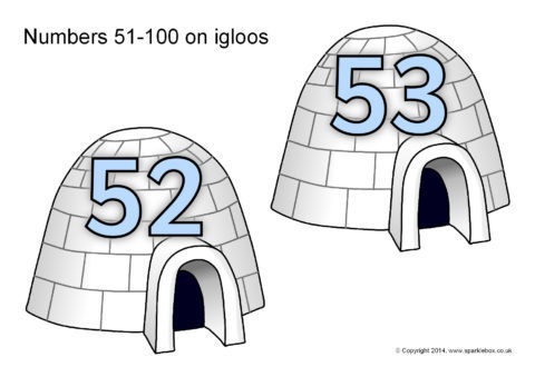 The numbers from 51 to 100 presented on igloos.  An extension to our existing Numbers 0-50 on igloos resource.