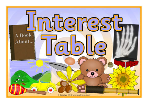 A printable A4 sign to use on your class ‘Interest Table’ where children can bring in items from home that are related to current topics and themes.