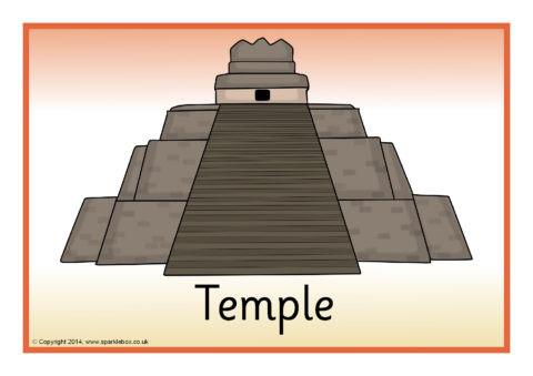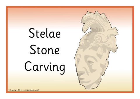 A set of simple posters showing various artefacts of the ancient Mayan people.