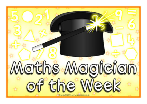 A magic-themed poster heading with the title, ‘Maths Magician of the Week’.